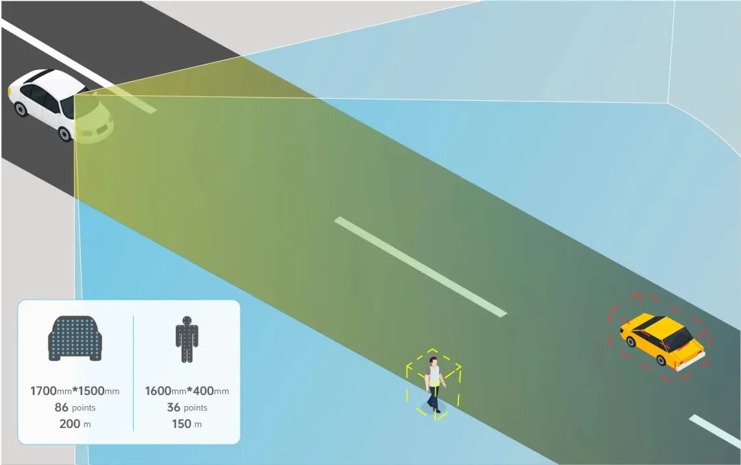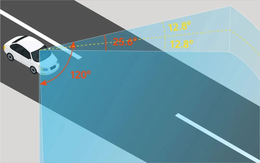 另外,AD2还具备全局高清的探测优势,即激光雷达在视场角为120°*6.4°的探测模式下,每个点与点之间的间隔都能保持在0.05°,实现120°*6.4°全视场内的高清效果,而非传统的ROI仅能在狭小的视场空间内实现高清探测,AD2使得激光雷达无需再像人眼驾驶一样“左顾右盼”,更加方便的兼顾更大范围内的目标检出,为降低事故发生提供了双重保护。