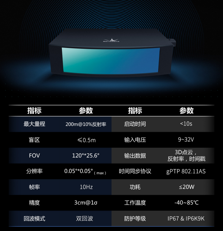作为北醒明珠级的激光雷达产品,AD2具备120°*25.6°探测视场角、10Hz刷新帧率、测距最远可达200m。探测能力上,AD2的分辨率最高可达0.05°*0.05°,可探测200m外反射率为10%的障碍物,并实现90%的有效探测率,即在200m外能够清晰识别出物体的轮廓以及姿态,极大的提升了软件层面的识别率,从而降低系统误判带来的驾驶风险。