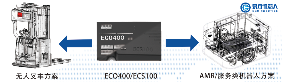 针对以上移动机器人产品的5大问题,易行机器人以技术为根本、需求为向导,自主研发通用控制器系列ECO400与精简款ECS100,支持二次开发,降低成本,为行业解决痛点推动移动机器人的落地应用。