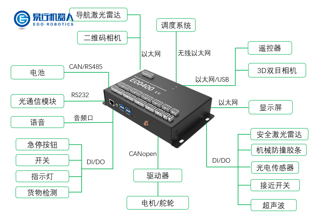 移动机器人,是智能机器人领域发展的重要分支。在移动能力发展初期,满足了工业和物流领域大量且繁重的物料搬运和周转的需求,以AMR、无人叉车为代表的新一代移动机器人开始登上舞台,并开始在物流、商业服务等更多场景中实现落地应用。但是目前移动机器人领域依然面临着核心问题的困扰,以研发为中心的易行机器人选择攻克难题为移动机器人扩大领域,在通用控制器系列产品里ECO400与精简款ECS100解决了移动机器人产品的5大核心问题。