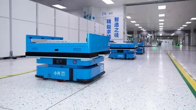 中兴通讯南京滨江5G智能制造基地内的AGV小车整齐划一地在车间里穿梭。(受访者供图,央广网发)
