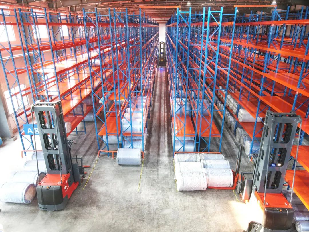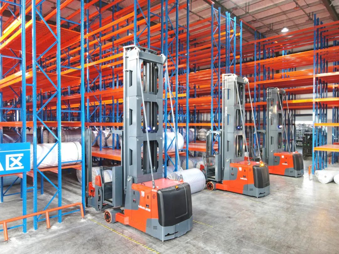 随着产业基地的扩大,对于货物仓储需求日益增大。MiMA窄巷道三向堆垛车,拥有密集堆垛和高效运力使得仓储扩容增效,在纺织行业得到了广泛应用。
