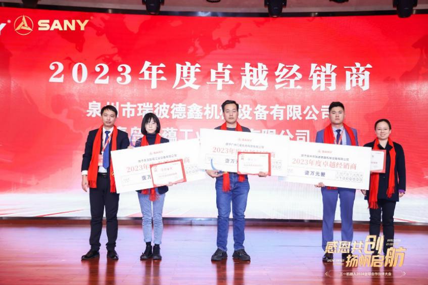 2023年,三一机器人凭借团队不懈努力和伙伴支持,在新能源叉车行业取得显著成就。为表彰销售业绩出色的经销商,激励整体团队更进一步。这荣誉不仅是对经销商的褒奖,更是对团队协同努力的集体肯定,助力三一机器人在行业创新与发展中迎接广阔未来。