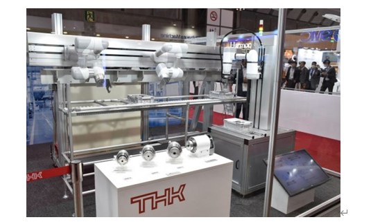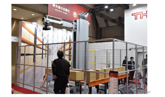 THK 推出了 MLS 系列圆柱坐标机器人,该系列机器人采用柱状线性轴,手臂可上下移动,适用于物流应用。在展会上,首次展出了最大有效载荷为 100 公斤的型号。