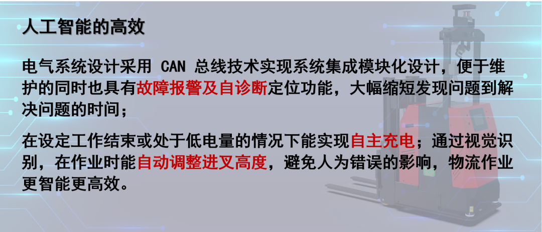 杭叉智能通过定制化设计专业的智能物流整体解决方案,以最优最简的设计精准达到用户需求。0.3t激光导引平衡重AGV可广泛应用于各种密集仓储需求的自动物流搬运场景,如食品、药品、电商等,是满足企业低承载高楼层搬运的不二选择。