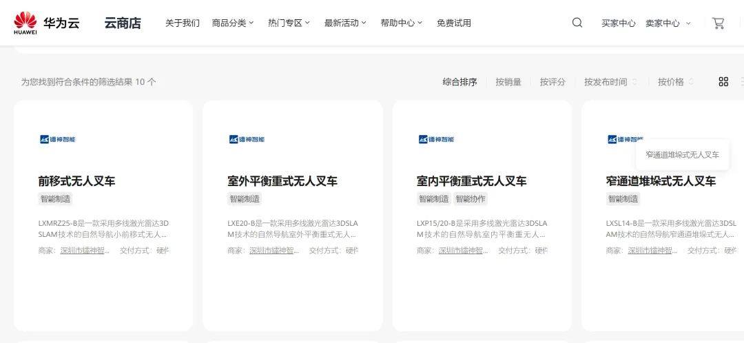 镭神智能陆续将无人叉车系列产品、高性能激光雷达及行业应用解决方案上传至商城,无论是企业用户还是个人用户,均可通过华为云商城享受到便捷的购买体验,同质的售后服务及技术支持。