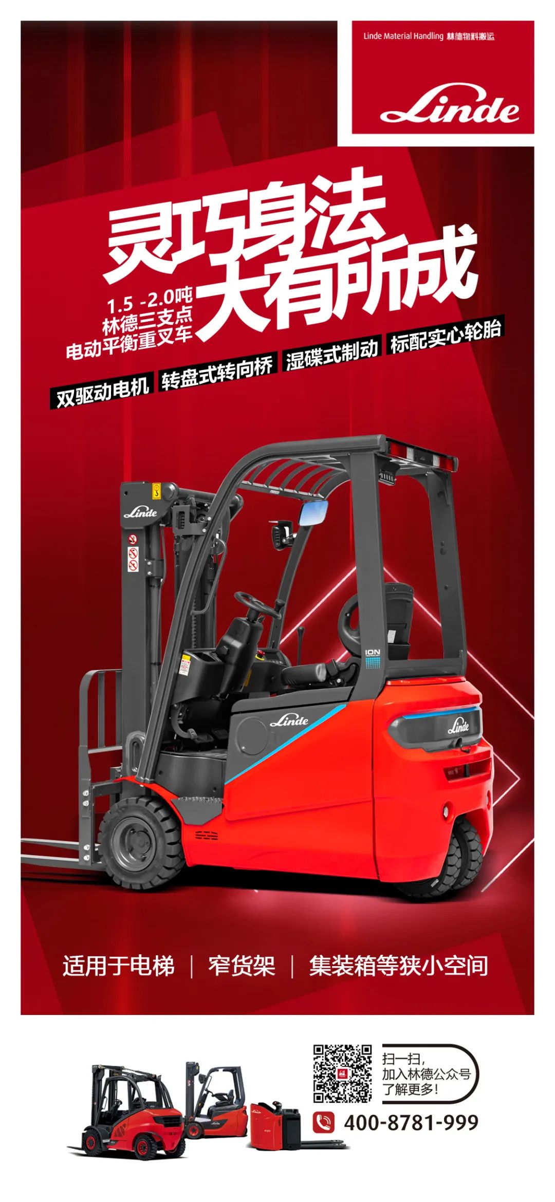 1.5-2吨林德三支点电动平衡重叉车