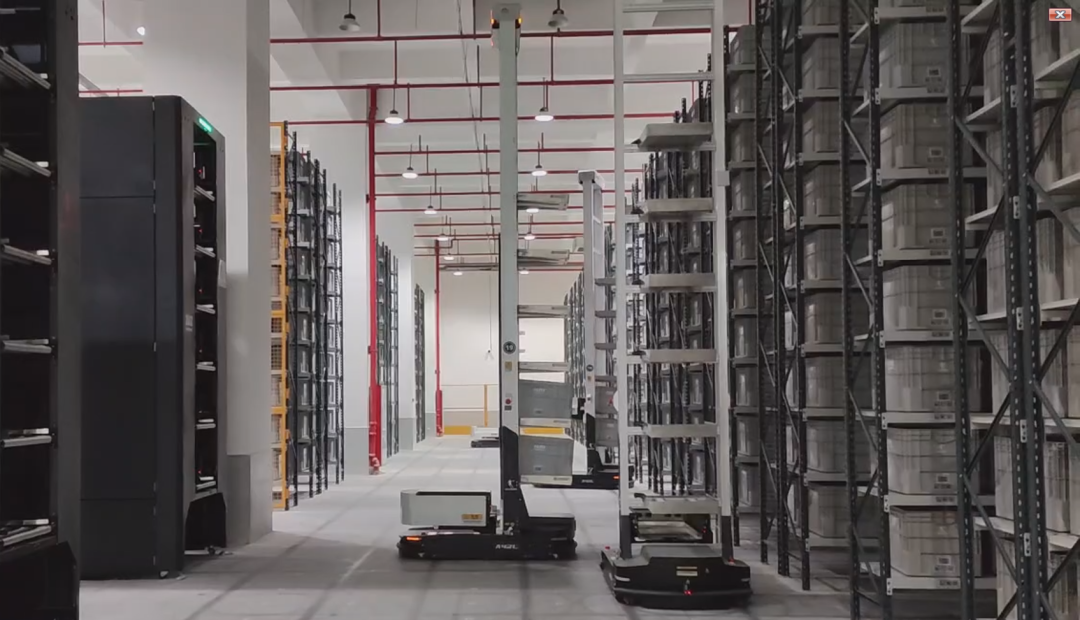 ACR料箱机器人将空料箱运送到入库工作站,人工往料箱补货并扫码入库。ACR料箱机器人将料箱上架至立体仓的空库位,形成可销售库存。