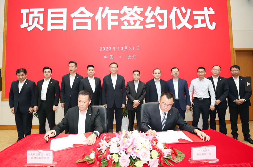 11月,三一集团与中天钢铁签署战略合作协议,双方就多领域深入合作达成高度共识。同时三一机器人与中天钢铁签订超高强精品钢帘线整厂智能仓储物流自动化项目合同,订单金额超1亿元,创单笔订单合同金额新高。