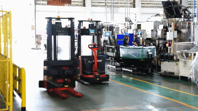 ▲新松叉式移动机器人在工厂内“奔波忙碌”