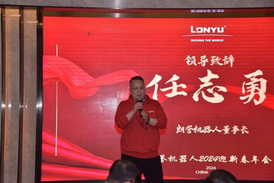 会议序幕由朗誉总经理杨国安先生深情开启,他回顾了朗誉机器人23年的辉煌历程,并前瞻性地展望了充满挑战与机遇的24年。各位嘉宾也纷纷发言,表达了对朗誉机器人成就的认可和未来的祝福。