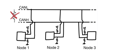 总线线路的两端使用电阻器(通常为 120 欧姆)进行端接,以匹配线路的特性阻抗。这种端接对于防止信号反射至关重要,信号反射会导致数据传输错误。在某些情况下,还可使用称为偏置电阻器的附加电阻器,以确保总线线路在无节点传输时处于已知状态。