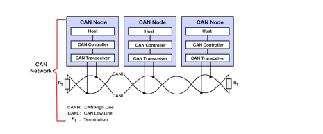 CAN 总线系统的结构 [6] 设计用于促进多个节点之间的高效通信。最基本的 CAN 总线系统由两条线路组成,即 CAN-高(或 CANH)和 CAN-低(或 CANL),连接到系统中的所有节点。这两条线路传输代表传输数据的差分信号。