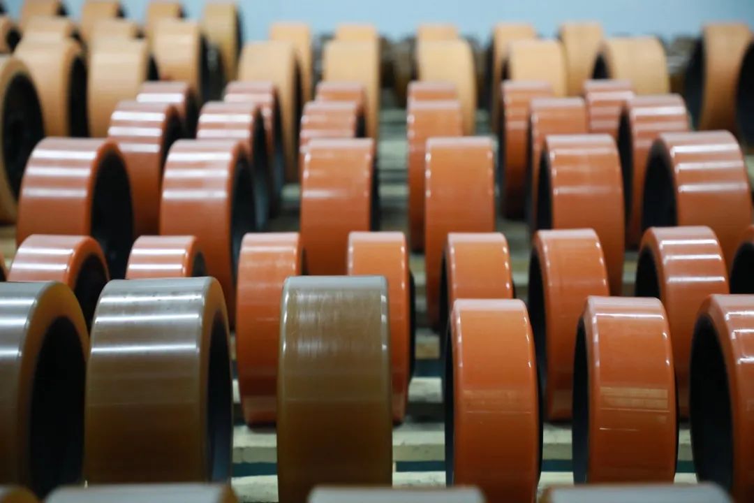 2024年安徽台创将再次引进先进生产设备,通过高品质的原材料、自研配方、以及生产环节中全覆盖检验检测,来保障台创聚氨酯轮的高耐磨、不脱胶、耐高温、抗冲击性的良好性能”。