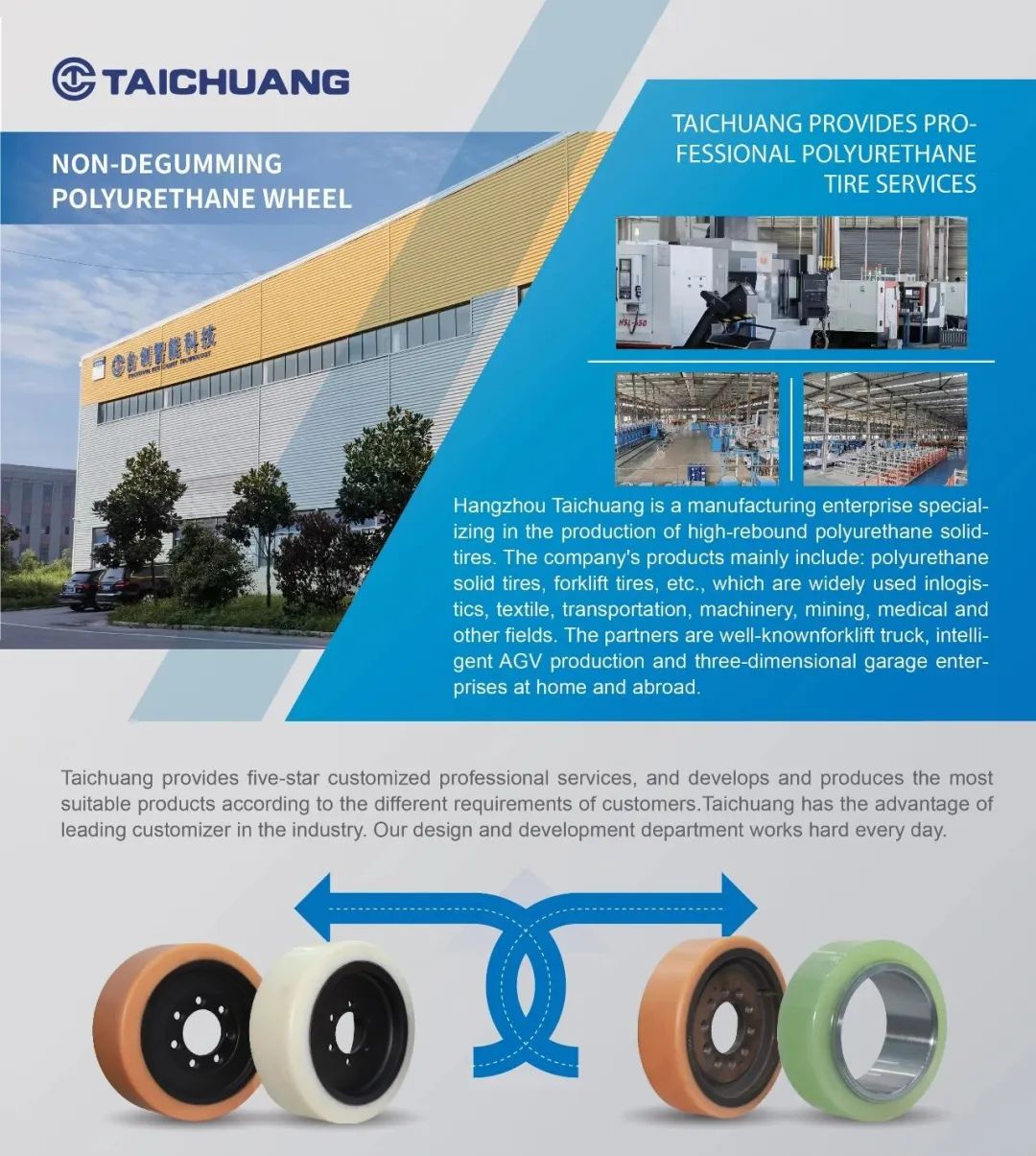杭州台创是一家以聚氨酯为主要原料生产各种类型的高反弹聚氨酯实心轮胎的生产型公司。我公司由专业的技术研发人员,引进日本最先进的技术工艺及最尖端的生产检验设备,从而打造出高端的聚氨酯弹性体实心轮胎。