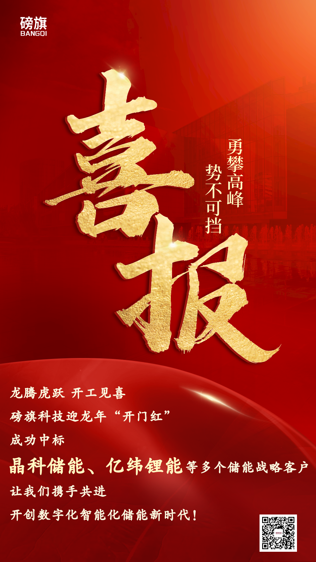 随着数字化和智能化在储能领域的日益重要,磅旗科技凭借在智能制造数字化领域的成熟应用经验和完善服务体系,依托于锂电产业深厚的技术积淀,形成了完备的储能行业数字化解决方案,成功脱颖而出,连续中标晶科储能、亿纬锂能等多个储能战略客户,以强势姿态迎来龙年开局。