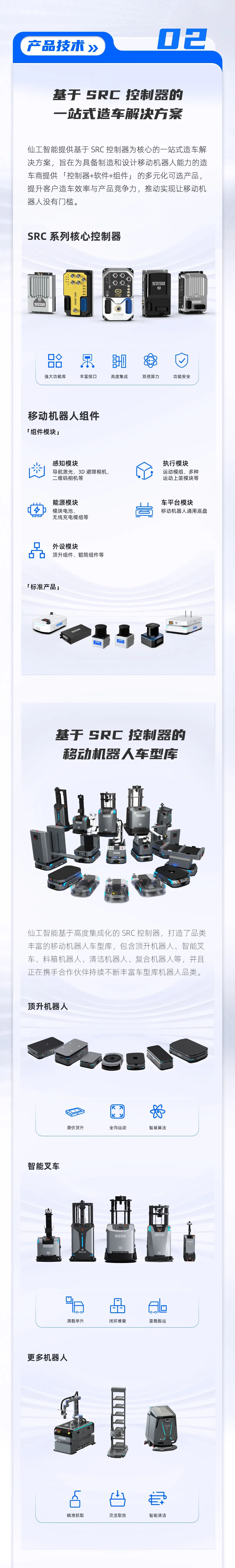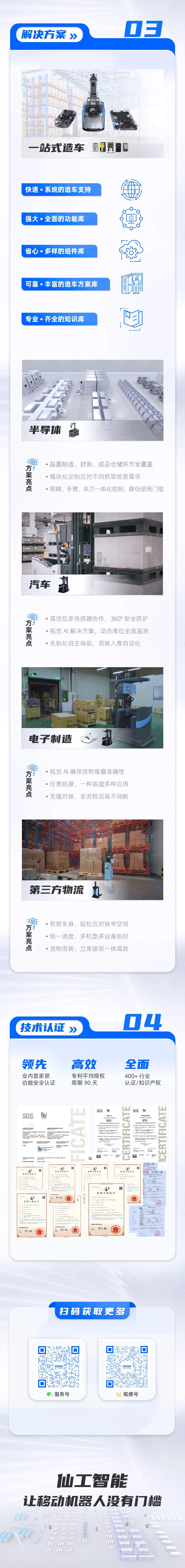 仙工智能掌握世界领先的技术与理念,打造智能、高效、可靠、易用的端到端工业物流解决方案,方案涵盖移动机器人控制器、各类移动机器人及相关数字化系统软件,帮助客户降本增效,实现智能化与数字化升级。