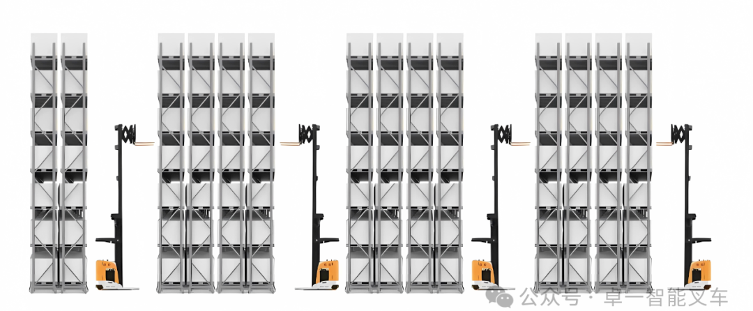 综合客户需求,卓一智能叉车给出了双伸位剪叉车搭配双伸位货架的仓储空间升级方案。