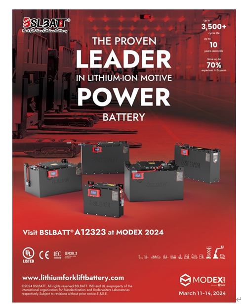 中国惠州--(Newsfile Corp. - February 27, 2024)--为仓储和配送行业的工业叉车设计和制造智能锂离子电池的解决方案制造商BSL新能源科技有限公司今天宣布,将参加10月11日至14日在美国佐治亚州世界会议中心A厅A12323展位举行的MODEX 2024 3展会。在这个快节奏的制造和供应链运营世界中,行业的未来取决于今天的前瞻性决策。MODEX 全面展示了现有和即将推出的供应链解决方案,让您一窥未来的发展方向。