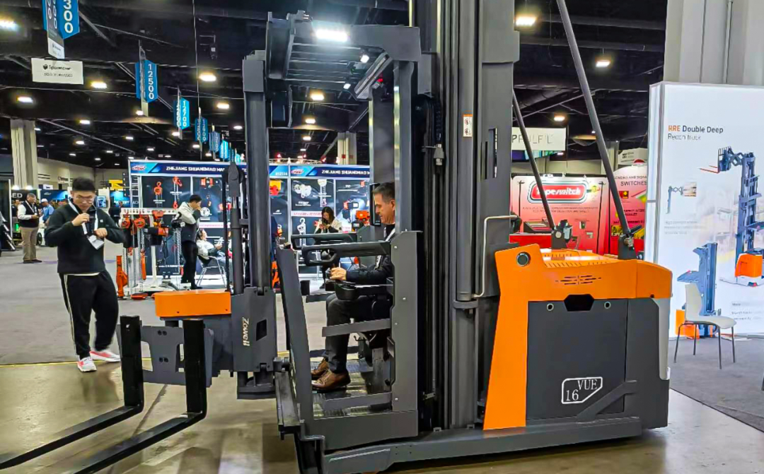 随着科研能力的不断强大,中国物流装备的技术实力与创新设计能力获得了美国及其他国际市场的认可,卓一智能叉车也不例外。本次盛会,作为差异化的电动工业车辆制造商,卓一智能叉车亮相展台,以独具优势的窄巷道产品在展会上大放异彩!