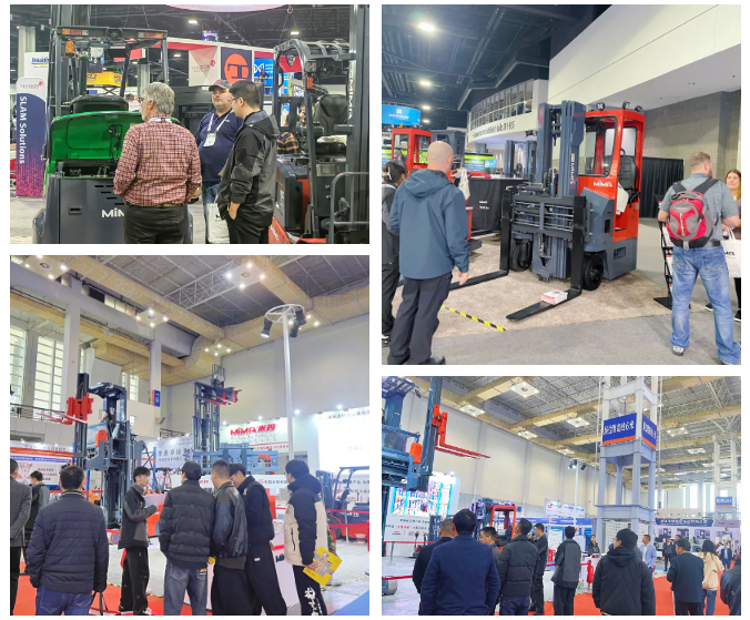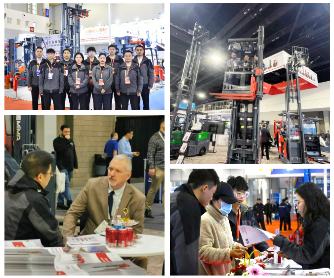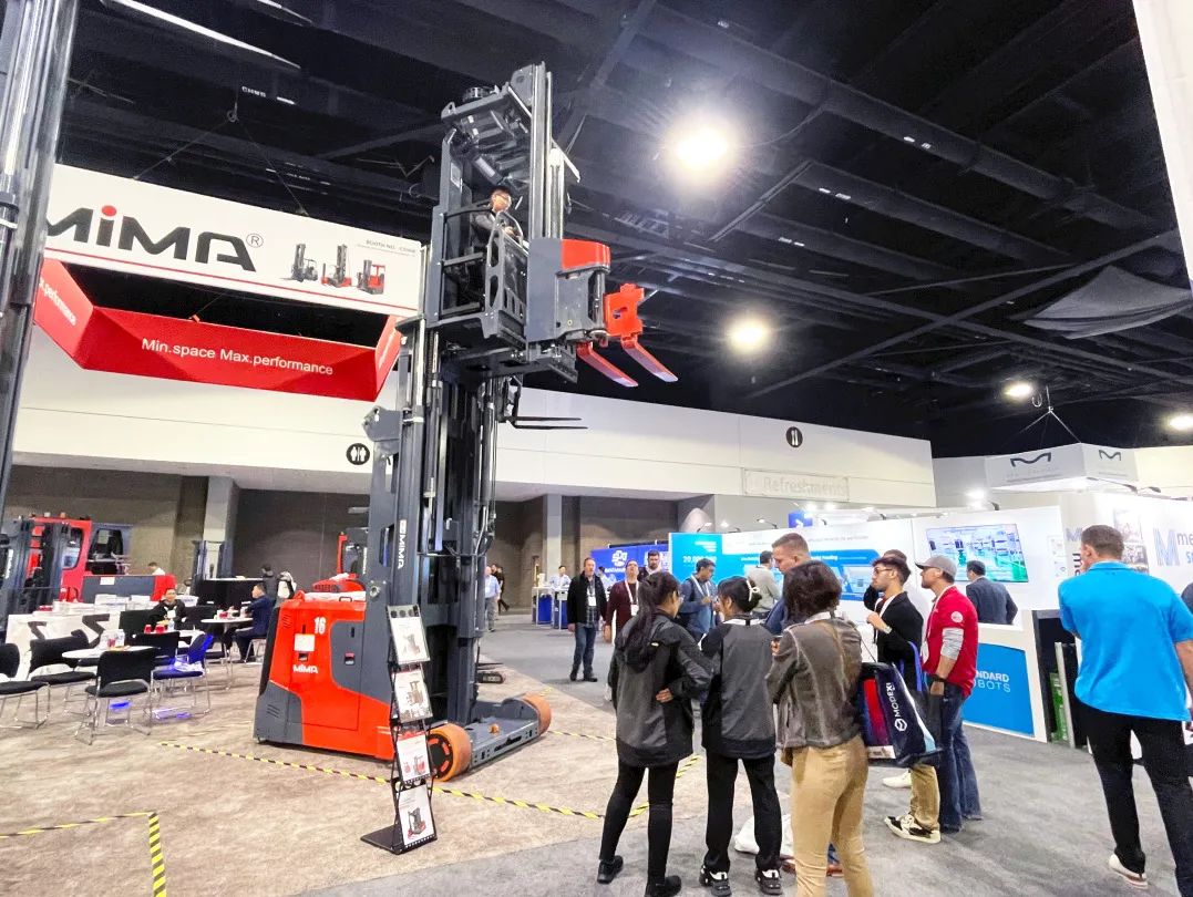 盛况持续进行,在美国亚特兰大、浙江宁波的展会现场,MiMA电动叉车的展台吸引了无数行业客户的关注。他们纷纷来到展台前,了解产品性能并在专业人士陪同下,试驾VNA窄巷道人上型三向叉车。这款产品以其独特的优势和创新的理念,聚焦多方视野,吸引许多客户关注。