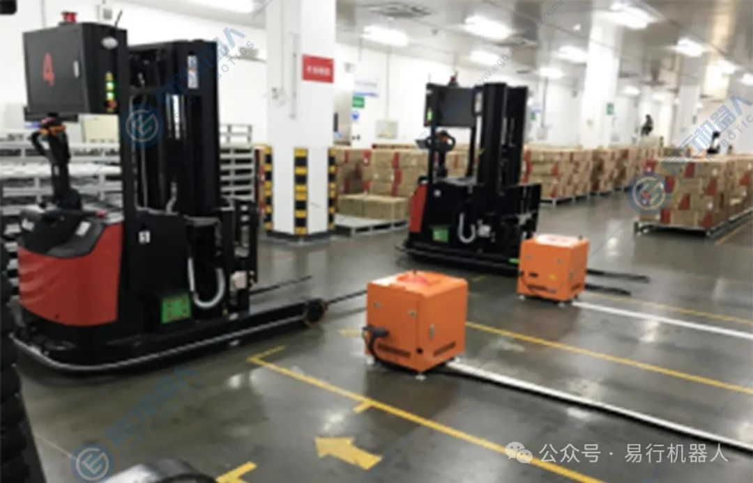 项目概况:车间内跨楼层无人配送改造项目导入五台易行机器人搬运式叉车AGV+中控调度系统