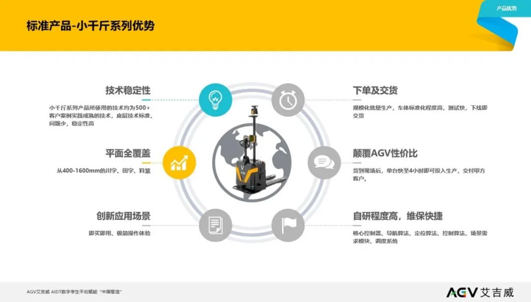 艾吉威机器人深耕移动机器人领域多年,基于无人叉车+AIDT数字孪生平台解决方案,帮助企业实现不同场景下的物流无人化需求。近期,艾吉威”小千斤“系列无人叉车落地多家头部物流企业,并出口马来西亚、西班牙等国,助力客户整体智能化水平提升,大大提升各物流要素质量和资源配置效率,为维护全球产业链供应链韧性与物流稳定贡献艾吉威智慧和力量。