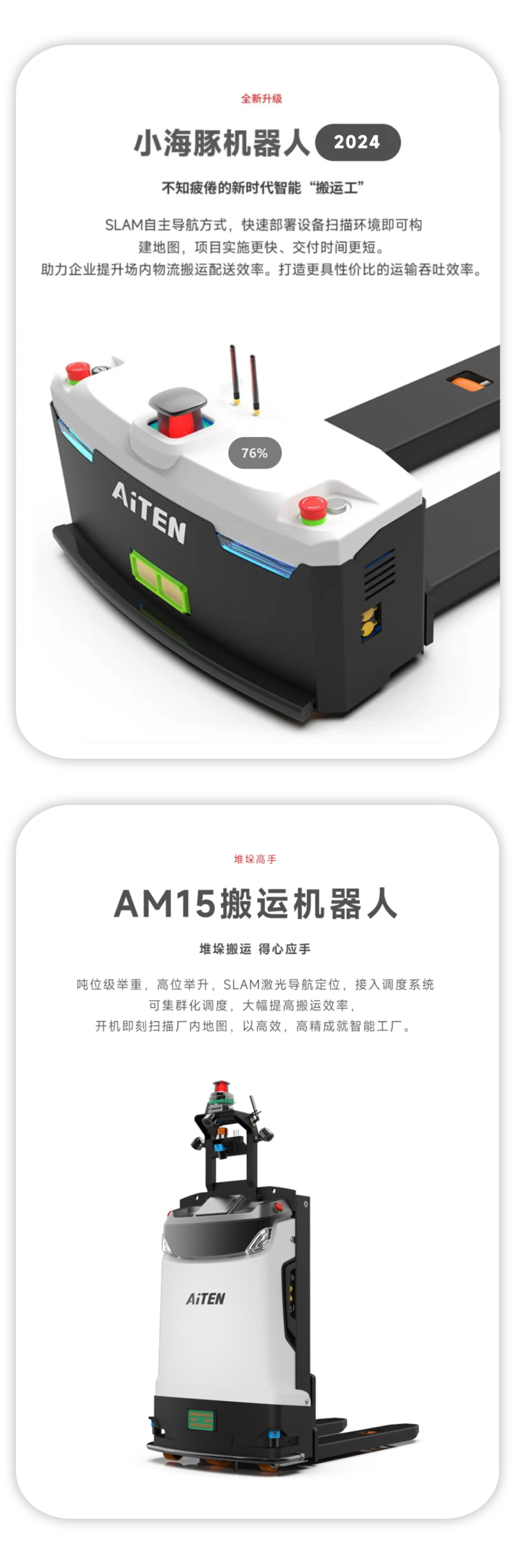 这两款机器人在展会上引起了观众们的广泛关注和认可。与传统叉车相比,无人叉车不仅操作简单,而且能够自主完成货物的搬运任务,大大提升了物流作业的效率和安全性。不仅解决了劳动力短缺的问题,还提高了作业的精准度和效率。”