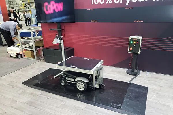 CaPow 的 Genesis 解决方案采用带有铜箔发射器的地面充电垫,机器人在上面滚动,通过安装的天线向它们供电。它可以与 Cornerstone 公司生产的 ResinDek 地板集成,全球许多使用机器人作业的设施都采用了这种技术。