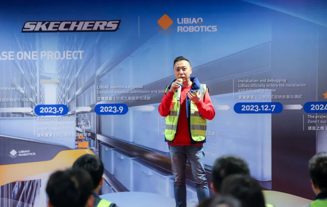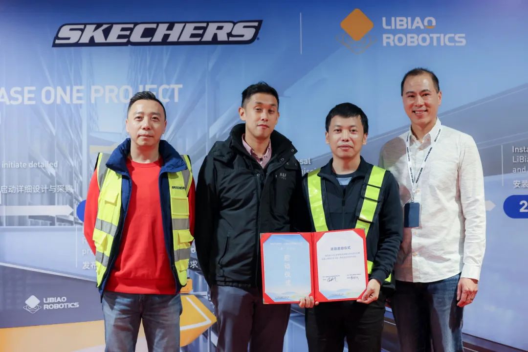 落成仪式上,斯凯奇代表们与立镖CTO朱建强先生共同上台,郑重签约并揭幕,标志着飞箱一期项目的正式落成启动。此次合作不仅实现了技术与市场的完美结合,更在物流仓储行业中树立了新的标杆。