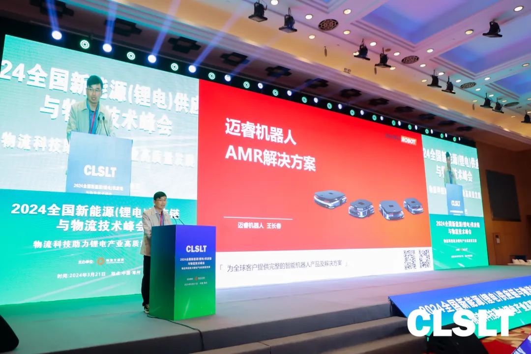 本次会议中,迈睿机器人华南区销售总监王长春先生基于迈睿机器人在新能源行业的落地经验和丰富案例,在现场与来会嘉宾分享“迈睿AMR在新能源企业智慧物流与智能智造中应用与实施”,讲述迈睿移动机器人及物流自动化设备对当前锂电供应链优化发挥积极作用,一起积极探讨智慧物流优化锂电制造业供应链、全球供应链的效率和稳定性的有效方案。