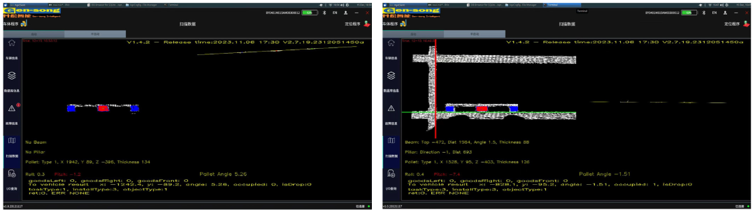 货架取放货,特别是高层货架,对取放精度和安全性要求很高。对此后向感知技术,基于先进传感器对场景进行扫描,通过识别货架关键特征,生成货位是否有货及取放货位姿信息,保障AGV高效取放货。