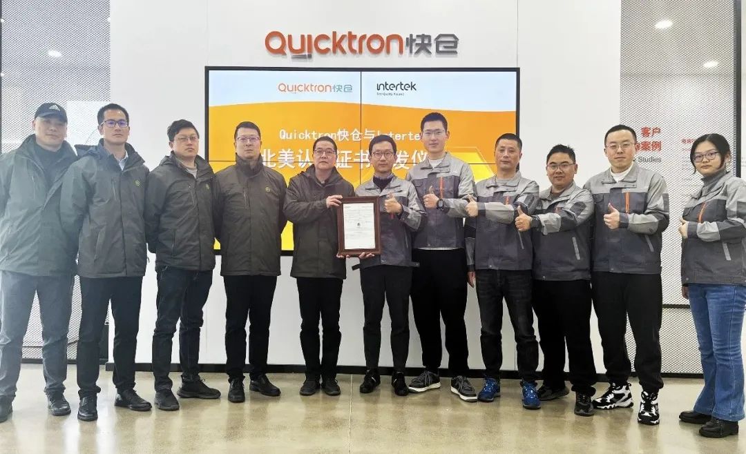 得益于Intertek天祥集团的支持,快仓成功获得了首张潜伏式机器人cETLus证书,这标志着快仓的产品已完全符合北美市场的安全标准,为进入北美市场铺平了道路。此项认证不仅体现了快仓在技术创新方面的不懈追求,也是我们产品质量和安全性的有力证明。