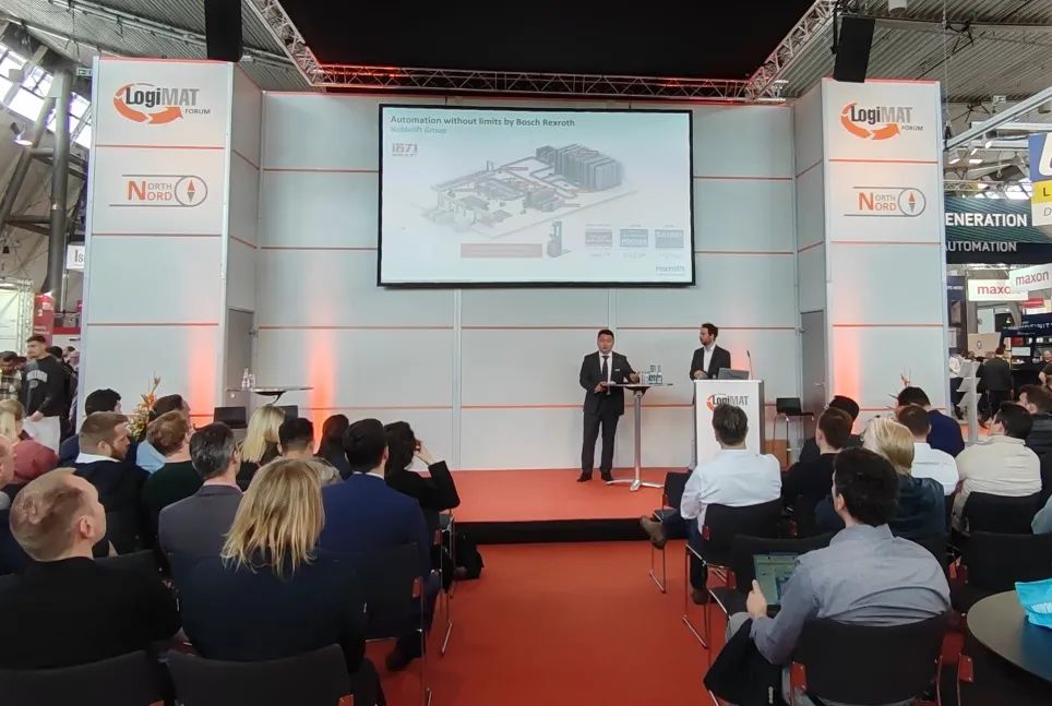 在本届展会期间,德国博世力士乐发布了关于仓库和内部物流自动化的产品组件,并开展了相关主题演讲。诺力集团副总裁、上海诺力智能总经理茆福军先生特别受邀出席演讲,并和博世力士乐产品开发负责人Timo Steinhagen开展了精彩的互动,向全球的媒体和观众介绍诺力集团和诺力的AGV产品及案例。