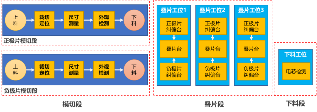定位检测:该方案可在叠片前对极片进行纠偏定位。