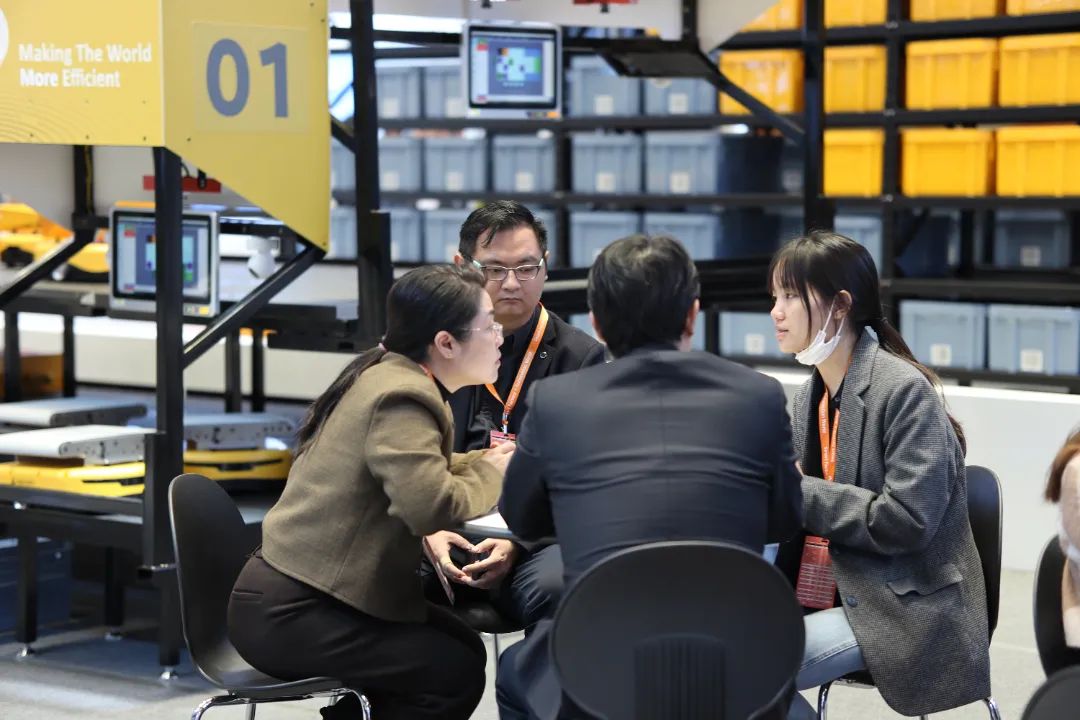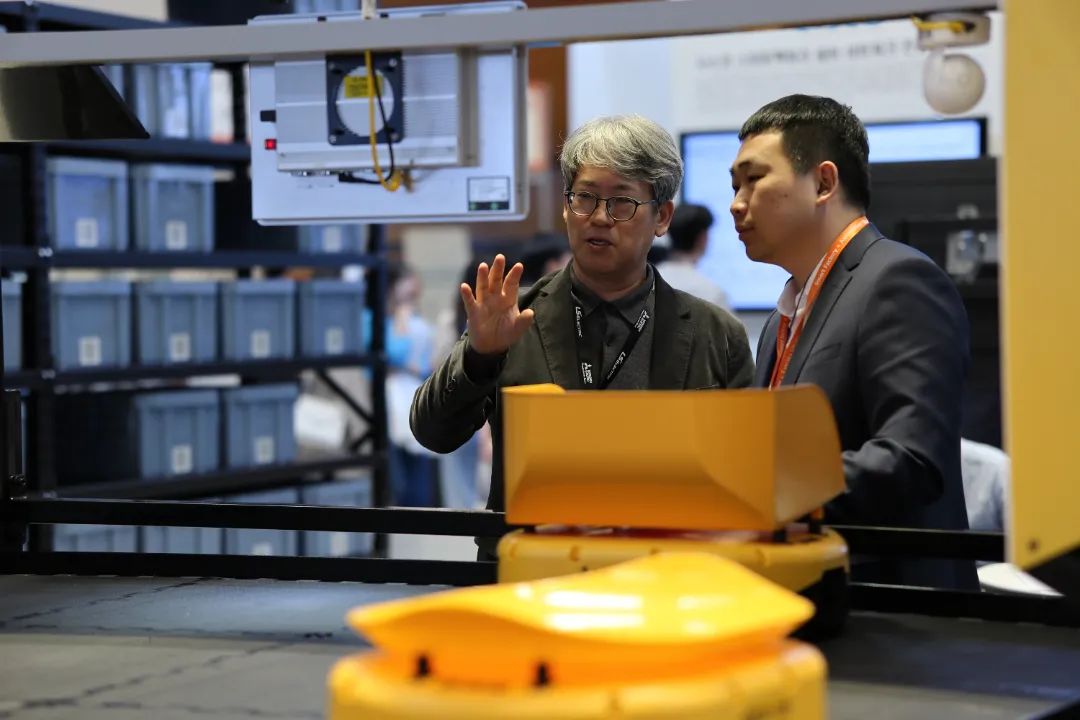 立镖作为全球领先的物流机器人解决方案供应商,此次携最新研发的AirRob飞箱系统参展,一经亮相便吸引了众多参展者的目光,纷纷驻足观看并与工作人员进行深入交流和探讨。场面一度十分火爆,展位人气居高不下!