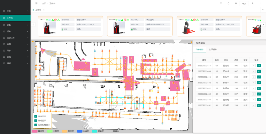 Ø 支持多车型混合调度(含差速、全向、叉车AMR);