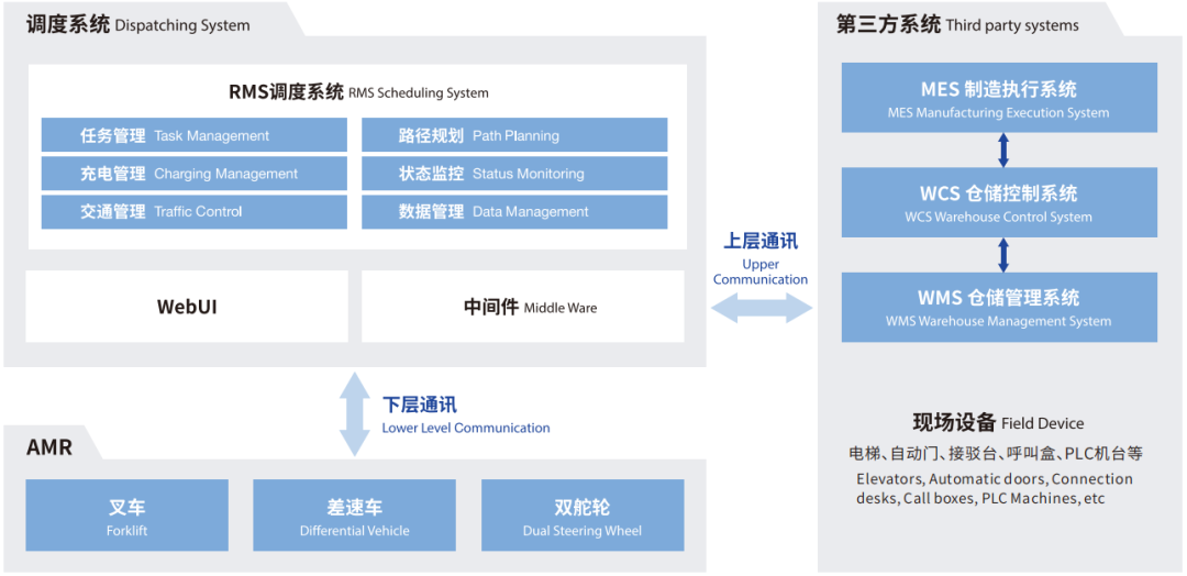 WMS仓储管理系统、WCS仓储控制系统、RMS智能调度系统