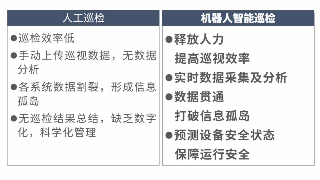 国自IW300代替人工实现对高压配电室全方位自动巡检,大幅提高配电室的供电可靠性。机器人“上岗”后,配电房巡检采用人机协同模式,大量重复性劳动由机器人完成,现场电气设备温度检测由每月一次变为每周一次,单次整站例行巡检时间由人工巡检的120分钟缩减至60分钟,巡视时间大幅减少,设备巡检频次、质量大幅提升。同时,现场工作人员只需通过主控台的巡视系统,即能实时掌握配电房情况,包括综合环境、表计读数、设备状态等数据信息。