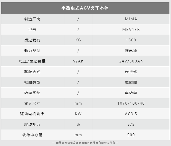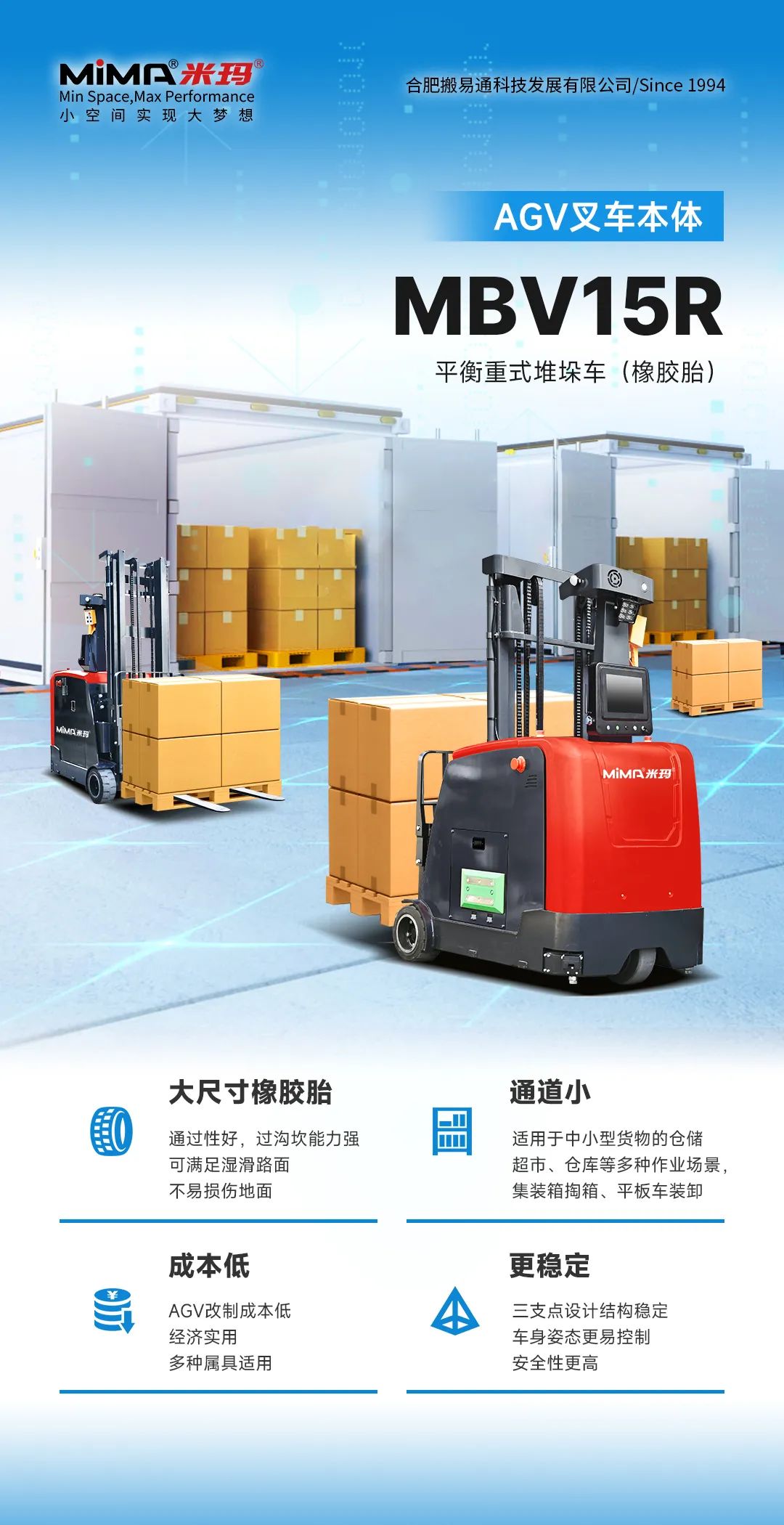 随着物流及仓储行业的快速发展,搬运工具的自动化和智能化升级成为必然趋势。MiMA米玛最新推出的平衡重AGV叉车本体MBV15R,搭配大尺寸橡胶胎,能够轻松应对厂区各类复杂路况。