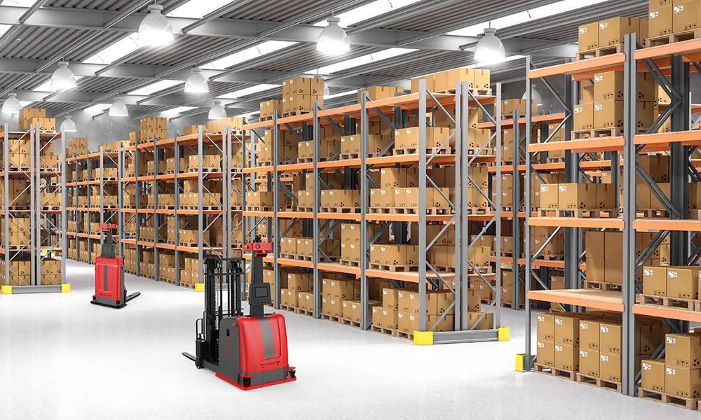 在高位货架区,AMR+堆高式无人叉车结合,可实现安全高效出入库,极大提升仓库存取灵活性,解决货物上下架搬运难题,并通过对现有立体货架智能升级,实现货物规整,提高搬运效率。