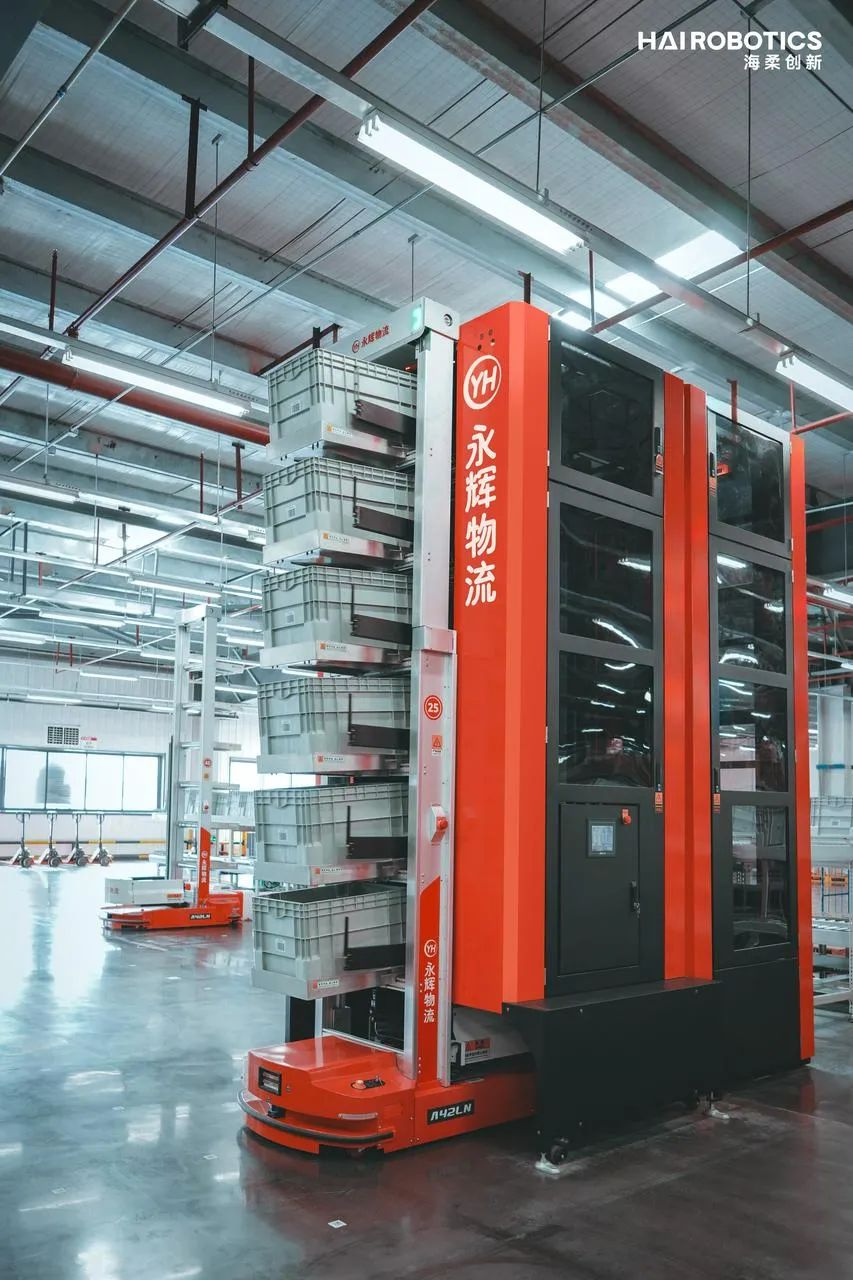 在常温物流配送的场景下,永辉引入海柔创新的箱式仓储机器人(Automated Case-handling Mobile Robot,简称ACR)系统,实现整体人员效率提升3倍,常温区的百货类食品用品更快出库,更好地满足了西南地区超100家门店的补货需求。