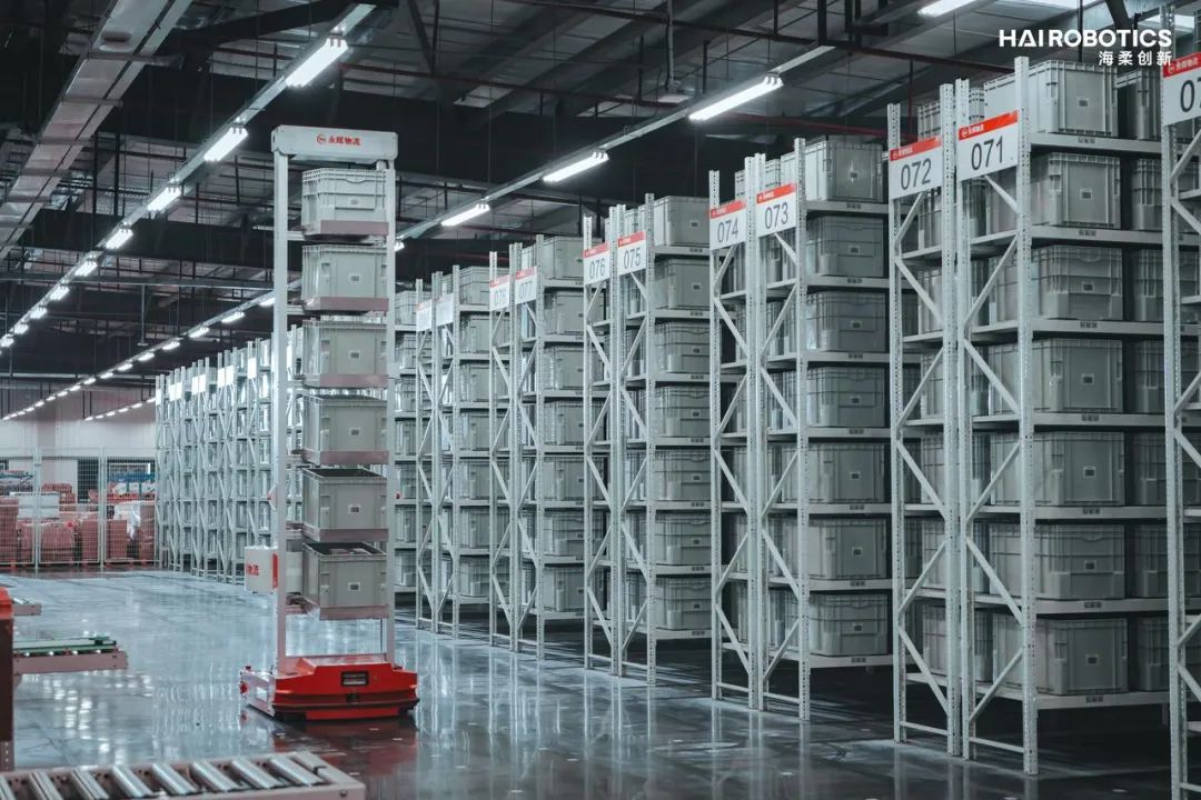 该方案包含ACR机器人+HaiPort装卸机+HaiQ智慧仓储管理平台的一整套软硬件解决方案,实现了商品出入库与拆零拣选、数字运营等全链路自动化。