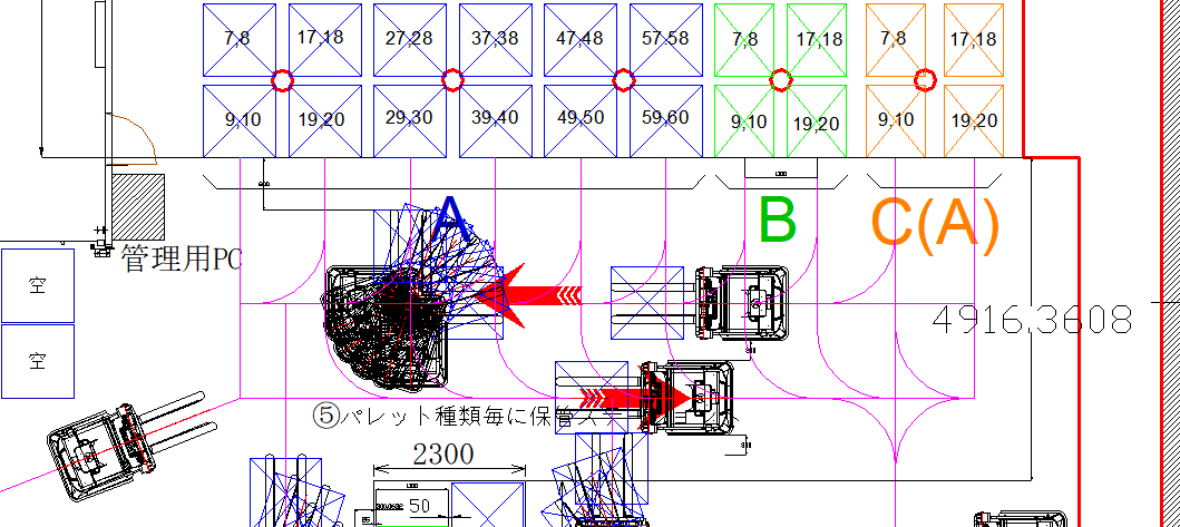 在近万平的后段工序中,分为梱包区域、成品暂存区、自动装车区三大区域,成品从输送线出料口,通过光电检测识别物料托盘种类,无人叉车自动运送至捆包区打包。完成打包,人工通过按钮盒呼叫无人叉车取料,将货物运送至成品暂存区分区堆叠存放。最后,通过导入天眼系统,检测库位状态(库位有无货物)及货物堆叠层数,反馈WMS,触发无人叉车进行自动装卸。