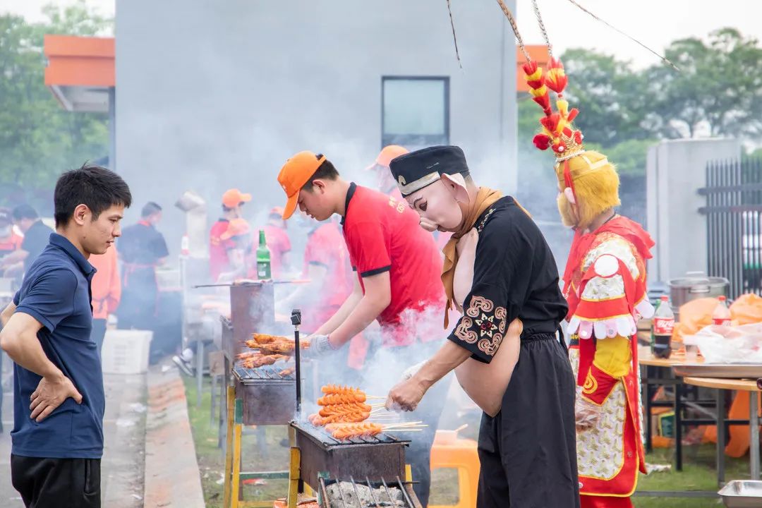 生活除了诗和远方,还有音乐、烧烤、龙虾、凉菜和啤酒……现场各种美味食材准备就绪,十位烧烤大师挥舞着手臂,烟雾缭绕,香气四溢,肉串冒着滋滋的热气和香味,火红的龙虾热辣滚烫,五花肉卷成球,配上一杯小啤酒,大有与尔同销万古愁的人间烟火味。每个人的脸上都洋溢着开心和满足的笑容。