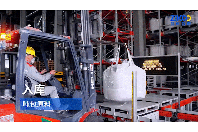 吨包原料由叉车工人放置在输送线上,吨位称重、入库检测,称重最大1500KG、称重精度1/1000,同时WMS将称重信息自动录入,入库生成供应商管理报表,及时盘点送料信息准确真实性。