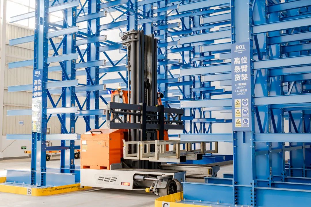卓一以最大起升高度10m的“蟹力士”助力该客户。独有专利技术赋能下,“蟹力士”长距离侧行也可保持优异的直线,在仅2750mm的作业通道内可轻松完成长物料高位堆垛作业;