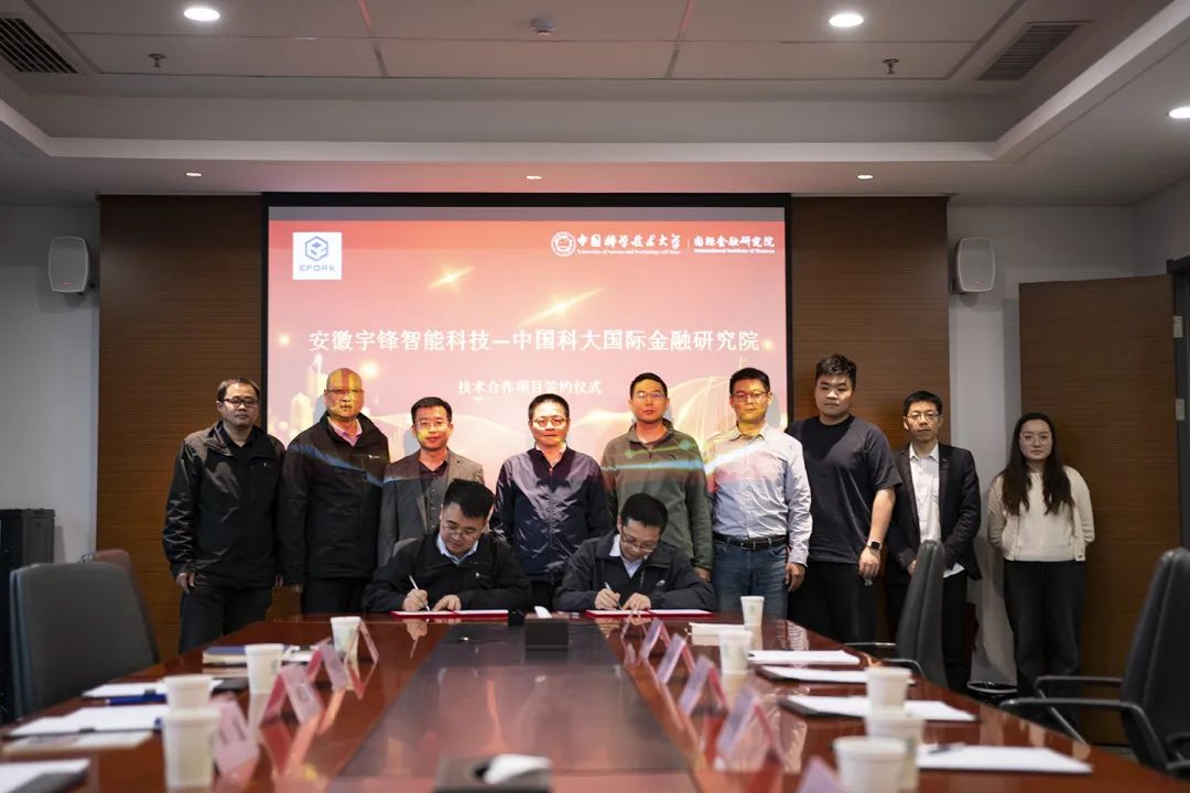 安徽宇锋智能科技有限公司(以下简称:宇锋智能)与中国科学技术大学国际金融研究院现代物流与供应链智库(以下简称:中国科大国金院智库)正式签署技术合作协议。此次合作标志着双方将来在仓储物流领域、科技创新与科技成果转化落地展开深度合作。