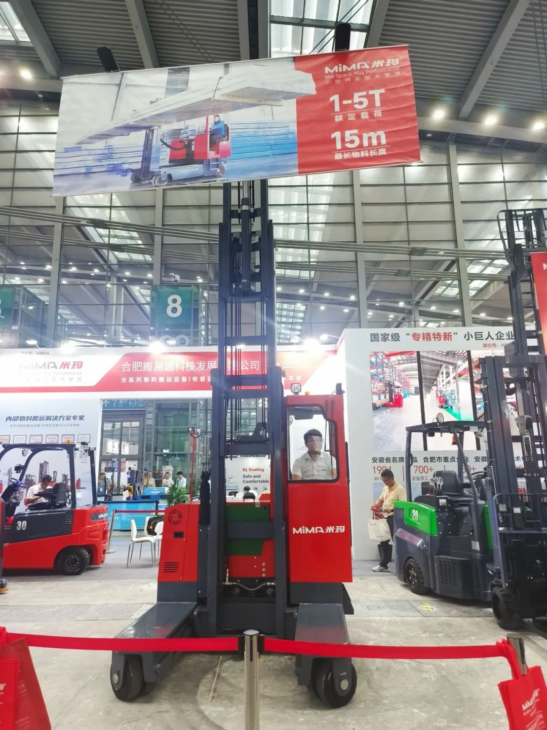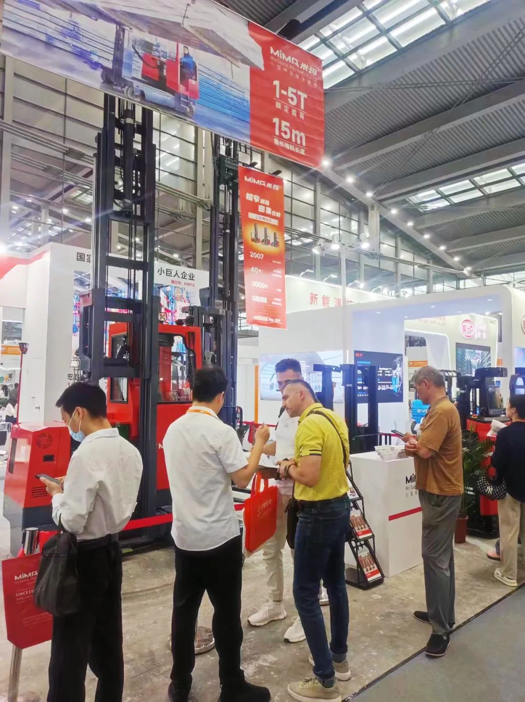 开展首日,MiMA展位人气如潮,备受瞩目,MiMA展位以其独特的设计和展示方式,成为了展馆内一道亮丽的风景线。尤其是MCC1.6吨人上型三向堆垛车及MQC2.5吨全向叉车的操作演示,吸引了大量的观众目光与讨论。