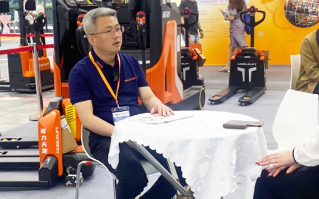 ▲ 上海诺力智能市场总监唐博接受现场采访